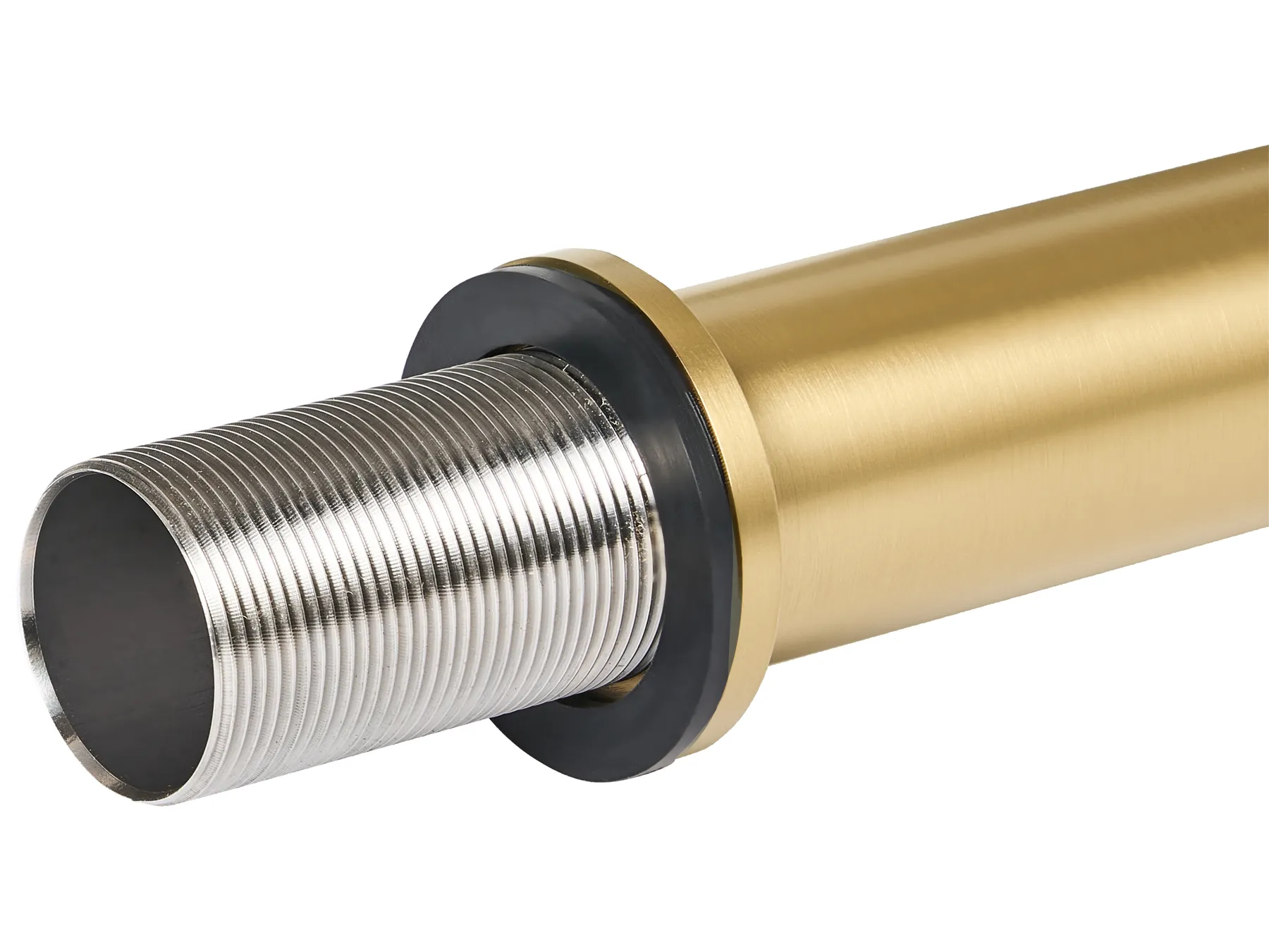 This sleek basin tap is a functional addition to your bathroom. The tap is crafted from brass in a classic matt finish in a gold colour that complements bathrooms in diversified styles. It features a single lever for convenient and easy water temperature and pressure regulation, and a straight spout for an elegant look.