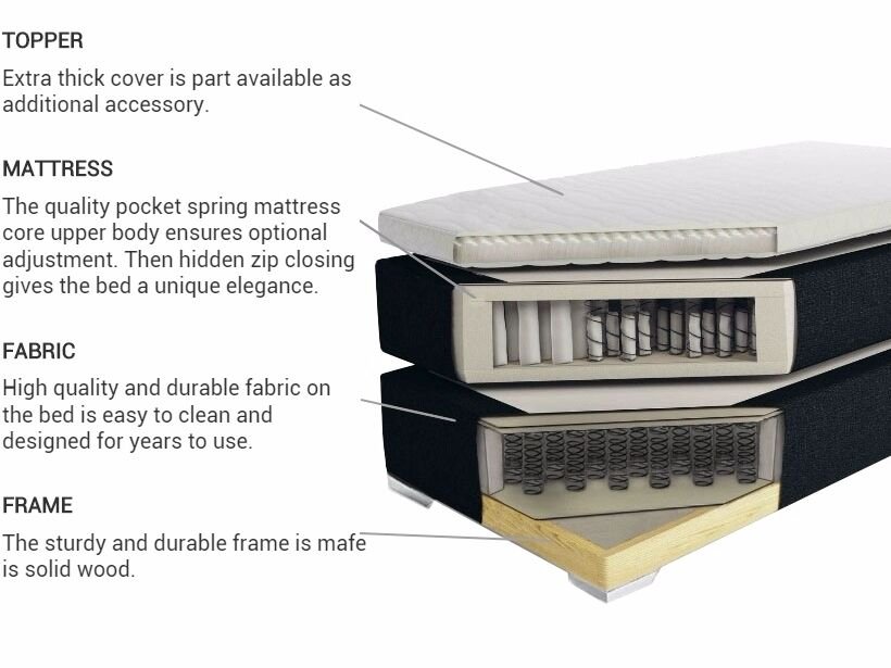 Create a focal point in your master suite with this divan bed that suits traditional and modern bedrooms. Its robust box base is constructed from solid wood and equipped with multiple flexible springs that provide an ideal base for a mattress. The simple design of chromed legs accentuates the classic grey linen upholstery perfectly. The divan bed comes complete with an H2 firmness level pocket spring mattress. Its ergonomic design guarantees a great support for a spine.