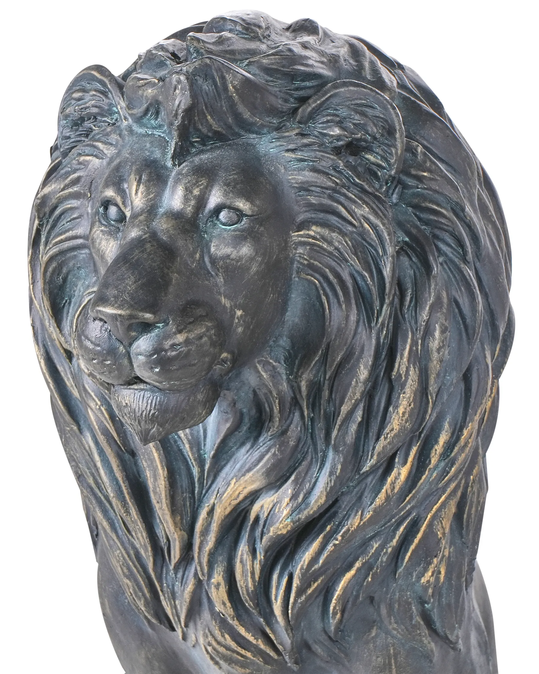 This lion figurine is a majestic addition that fits perfectly into any indoor or outdoor setting. Handmade from durable materials and finished with a distressed effect, it adds character to any space. Placed next to the entryway, it creates a striking accent that draws attention and brings an elegant touch to your home.