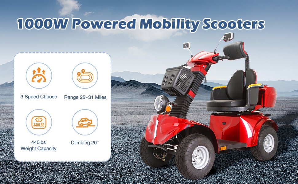 Equipped with a robust 1000W motor, this powered mobility scooter delivers exceptional performance, allowing you to effortlessly conquer inclines of up to 20 degrees.
