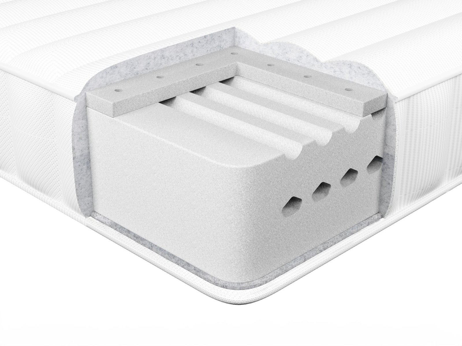 This high-quality mattress features a 7-zone design that combines responsive latex and flexible foam layers to deliver optimal support across the entire body. The zoned construction consists of seven distinct areas, each tailored to respond to specific pressure points, including the lumbar region and hips, and helps to maintain proper spinal alignment throughout the night. The foam filling adds plush cushioning for enhanced comfort, while the latex layer improves flexibility and breathability. Made from durable materials, this mattress is built to last and promotes excellent airflow for a cooler, more comfortable sleep experience.