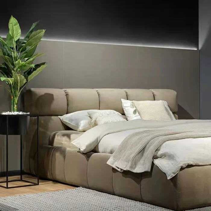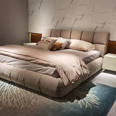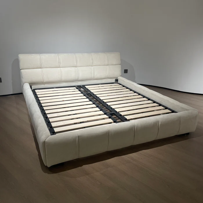 A beautiful upholstered bed, made from a solid wood frame. The bed is cushioned with premium foam.