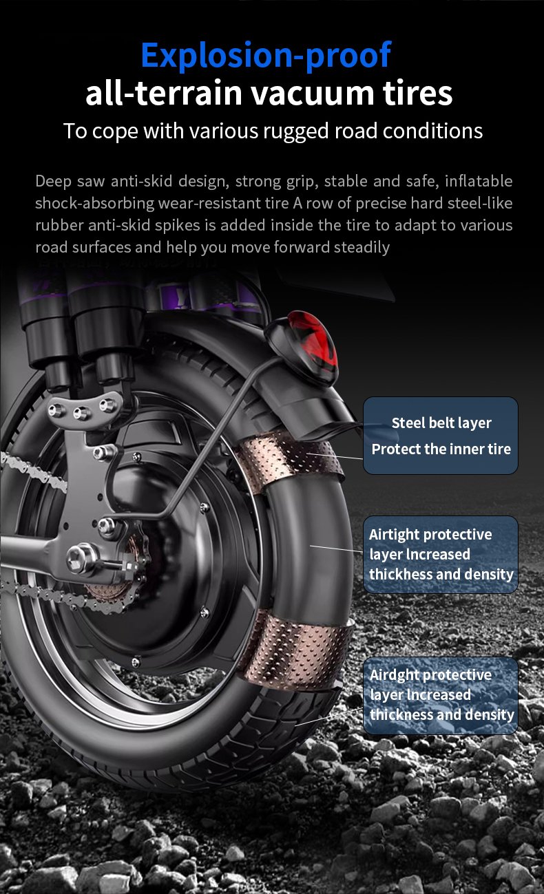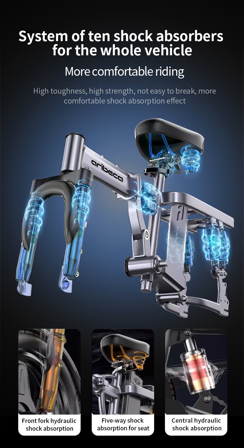 This stunning step-through electric bike is designed with aesthetics and comfort in mind, making it the perfect choice for riders of all genders and abilities. But don’t be fooled by its easy-to-use design – the Ares Ar 8 SUV is a powerhouse on any terrain. Its robust frame, full suspension, and incredible grip fat tires make it the ultimate choice for riders looking to take on everything from city streets to rugged mountain trails.