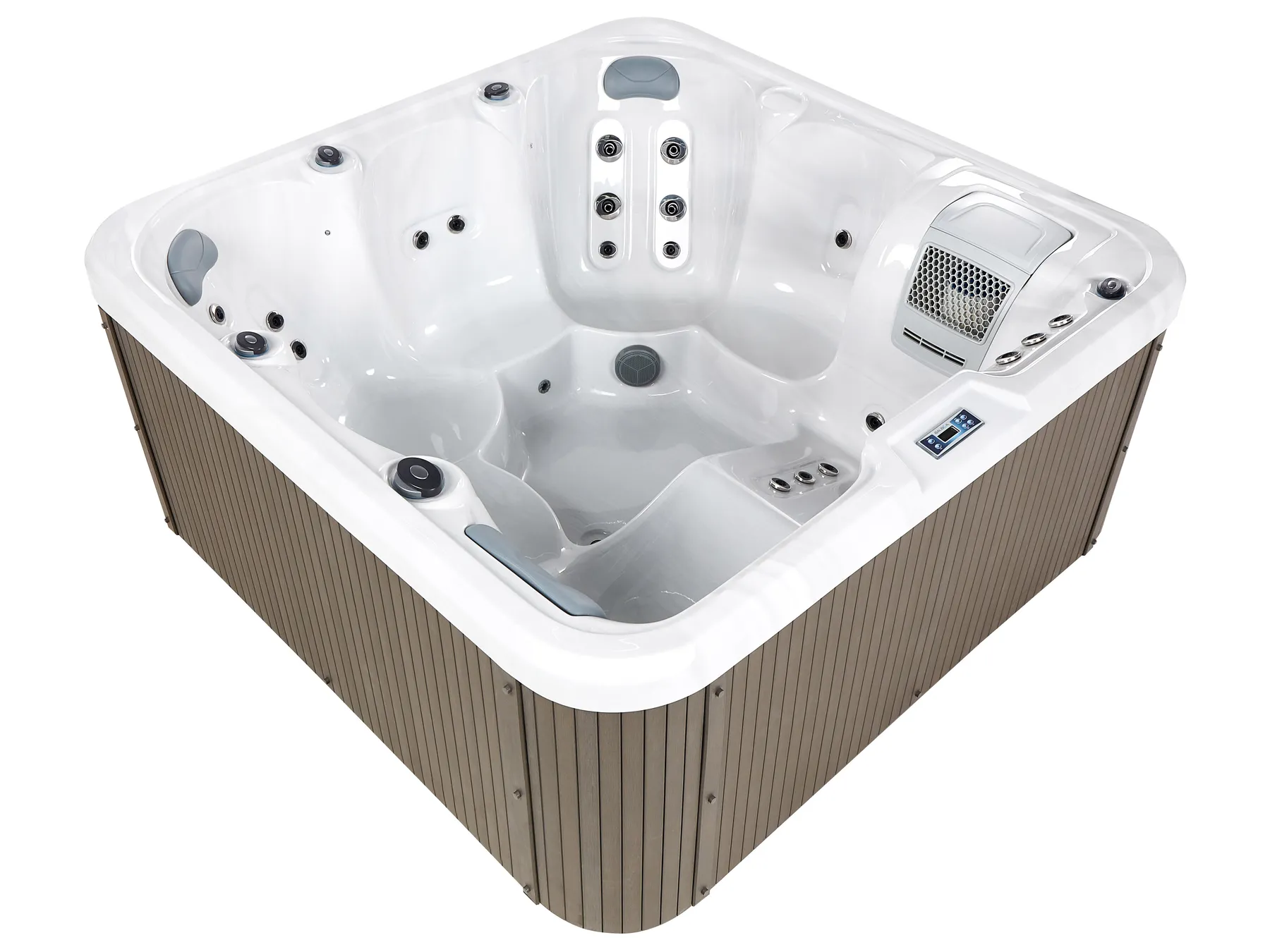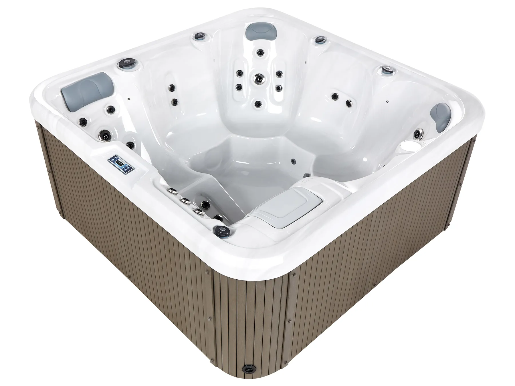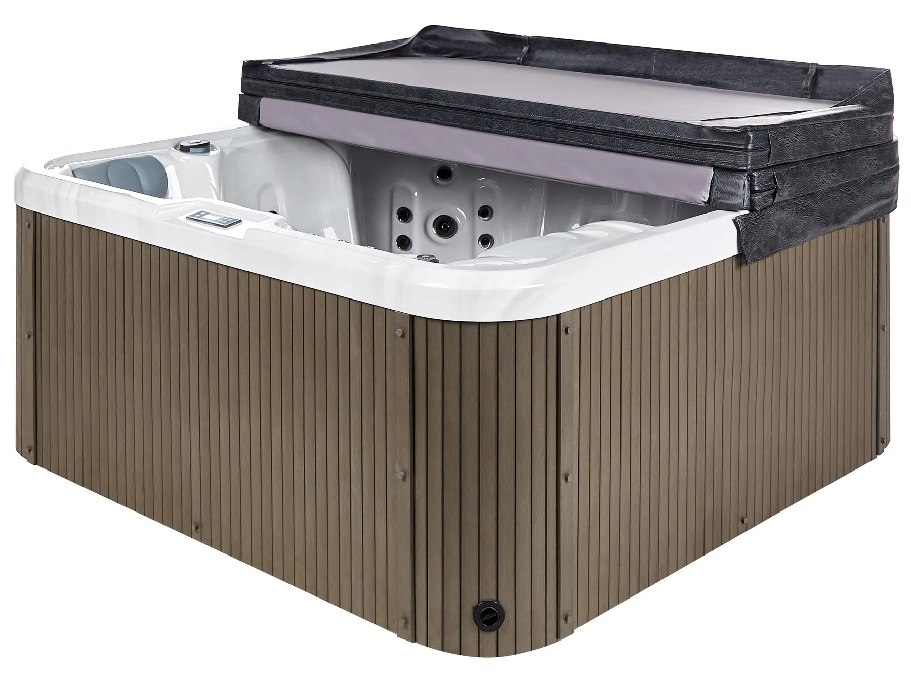 Enjoy ultimate relaxation with this durable outdoor hot tub, featuring an easy-clean acrylic interior and sleek stainless steel panels for lasting quality. With 33 nozzles providing a gentle water massage, a built-in control panel, and 9 multi-coloured underwater LED lights, it creates the perfect relaxation experience. Seating up to six, including a lounge spot for full-body relaxation, it’s ideal for unwinding. Complete with a cover for protection, this tub is made for year-round enjoyment.